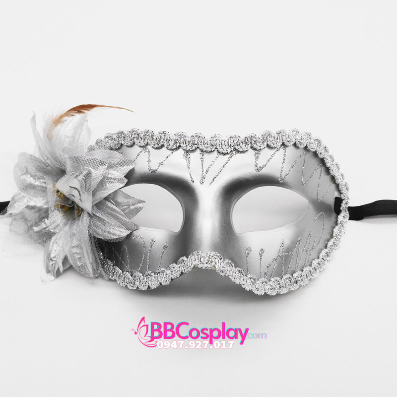 Mặt Nạ Nửa Mặt Trơn Viền Ren Có Hoa - Màu Bạc