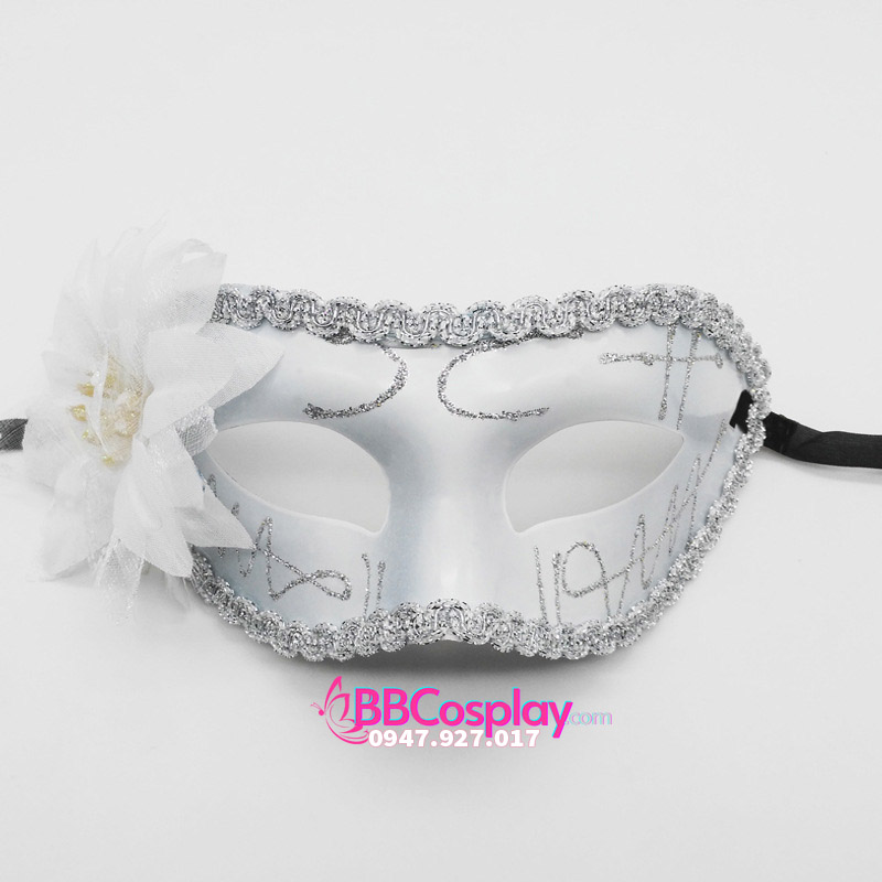 Mặt Nạ Nửa Mặt Trơn Viền Ren Có Hoa Màu Trắng Bạc