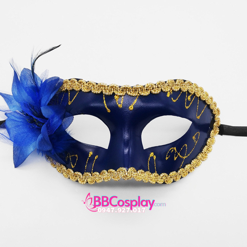 Mặt Nạ Nửa Mặt Trơn Viền Ren Có Hoa - Màu Xanh Đậm