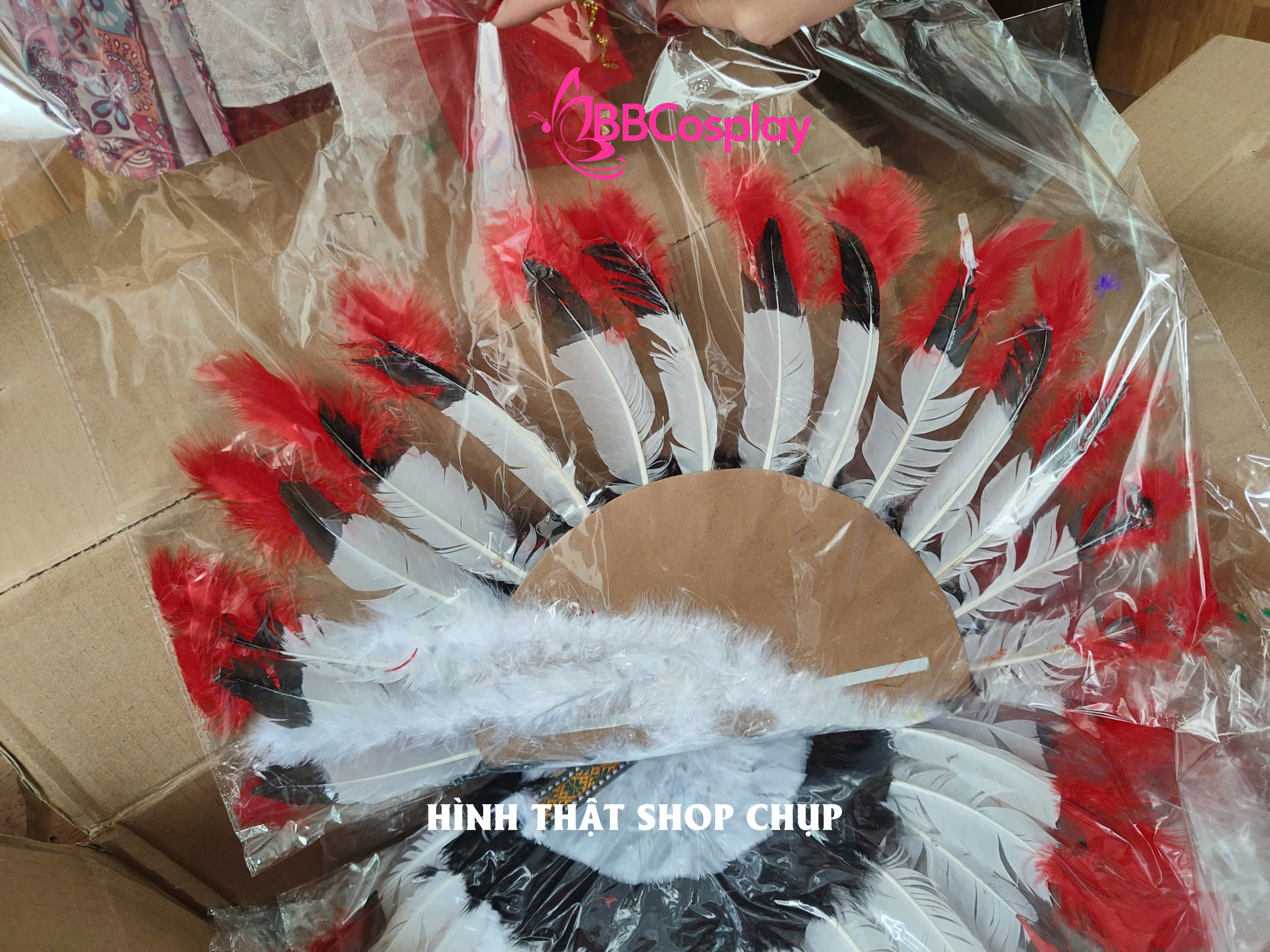 - Chất liệu: lông chim tự nhiên, bìa giấy