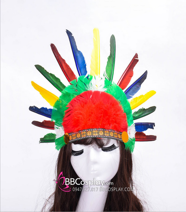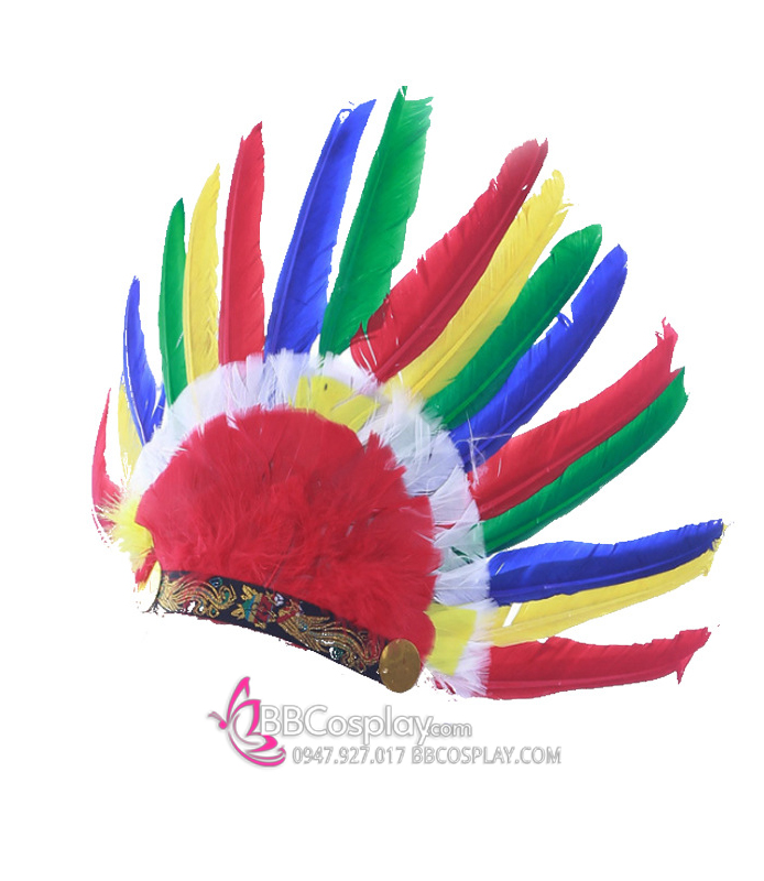 Nón Thổ Dân Lông Chim 7 Màu - Sội Lông Nhỏ