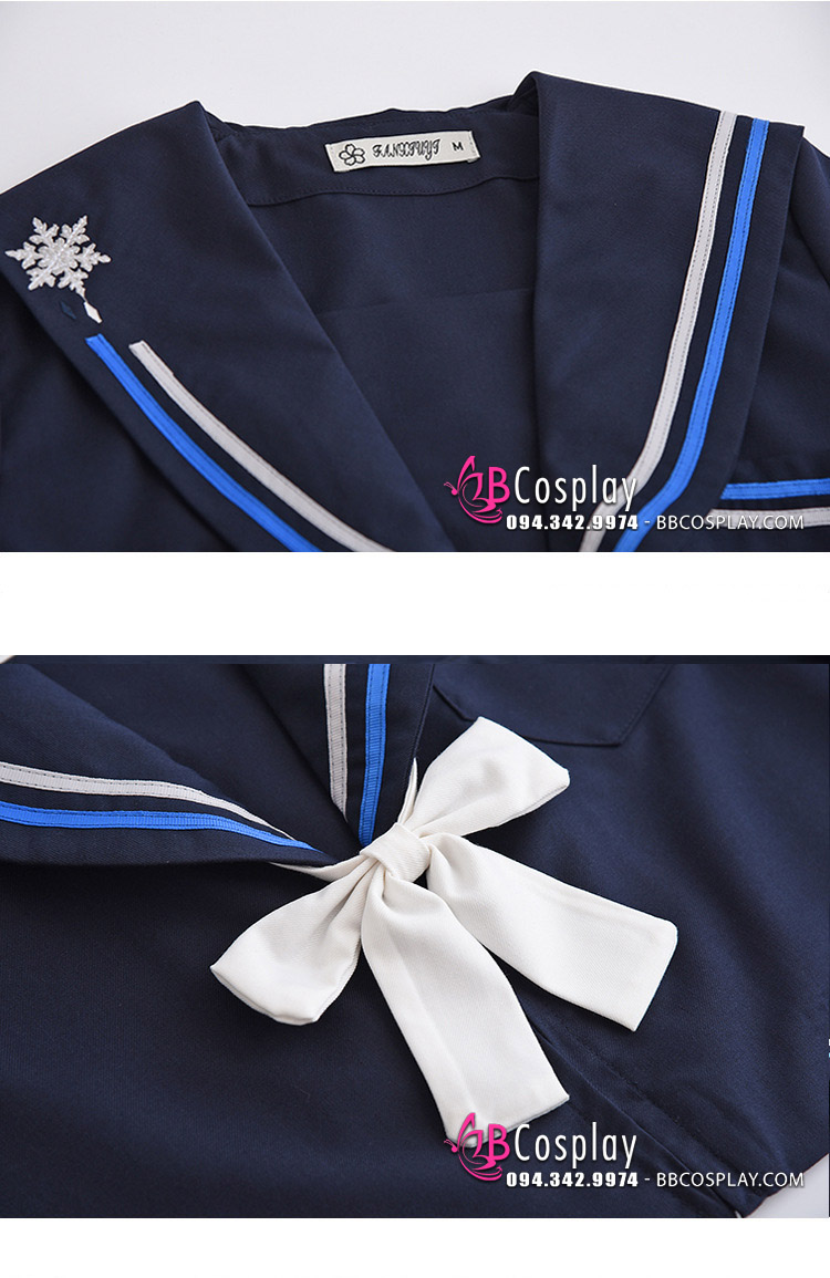 Nữ Sinh Hoa Tuyết Xanh Đậm Có Size XL