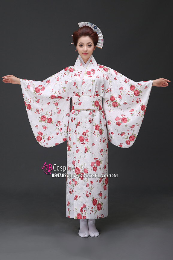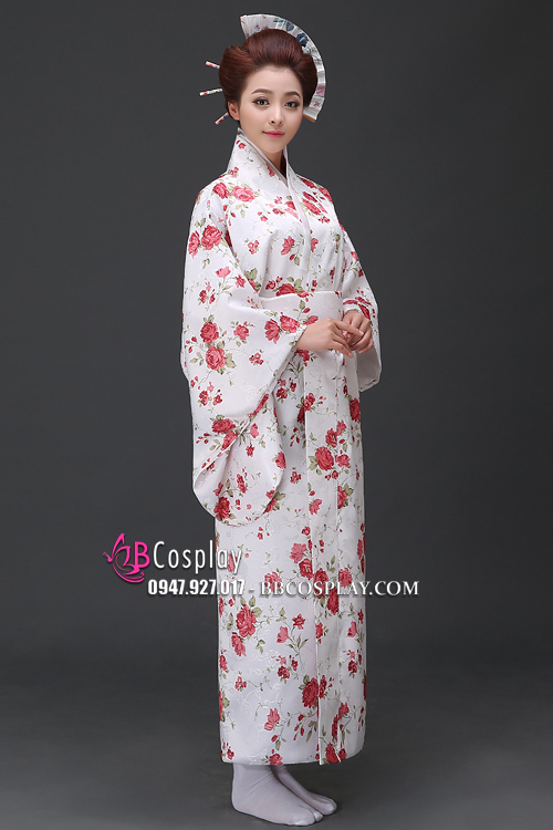 Yukata YEN Trắng Hoa Đỏ