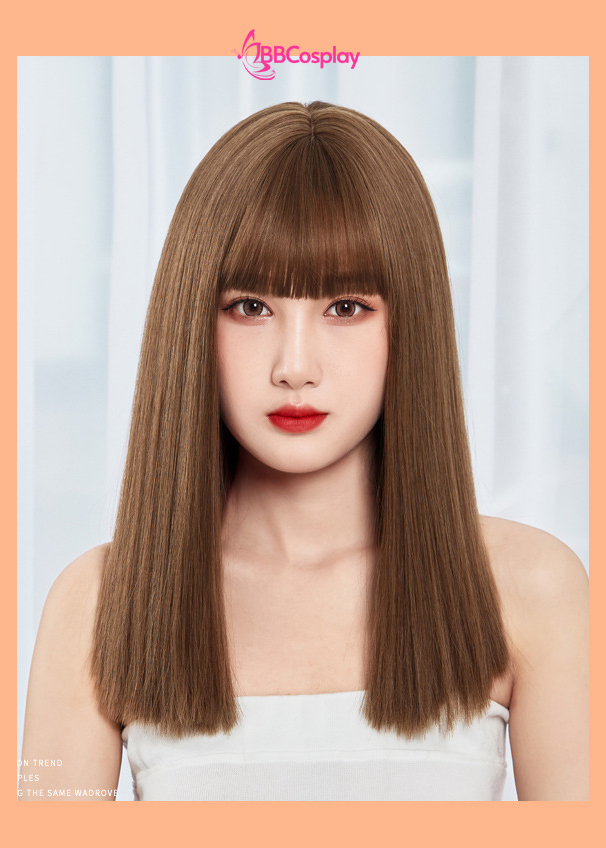 Tóc Giả Nâu Hạt Dẻ Mái Ngang Dài Qua Vai