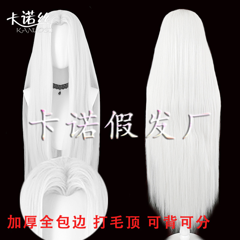 Tóc trắng mái xéo 100cm tặng Wigcap