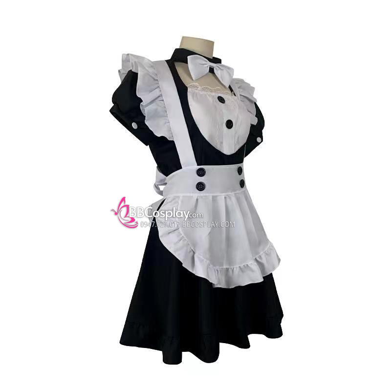 Đồ Nàng Hầu Maid Đen Tạp Dề Trắng Kèm Nhiều Nơ