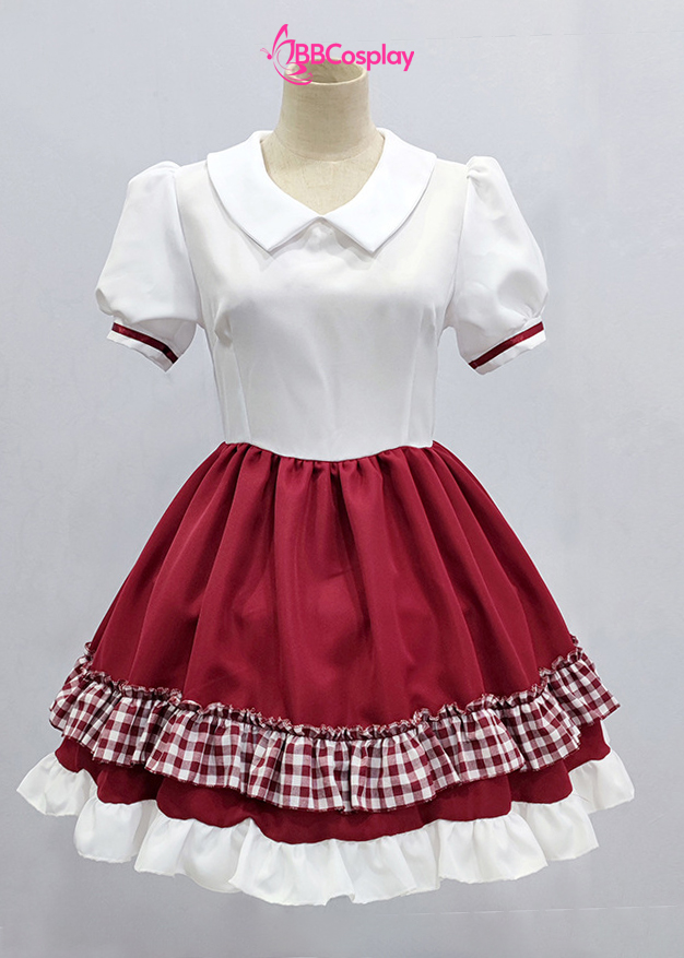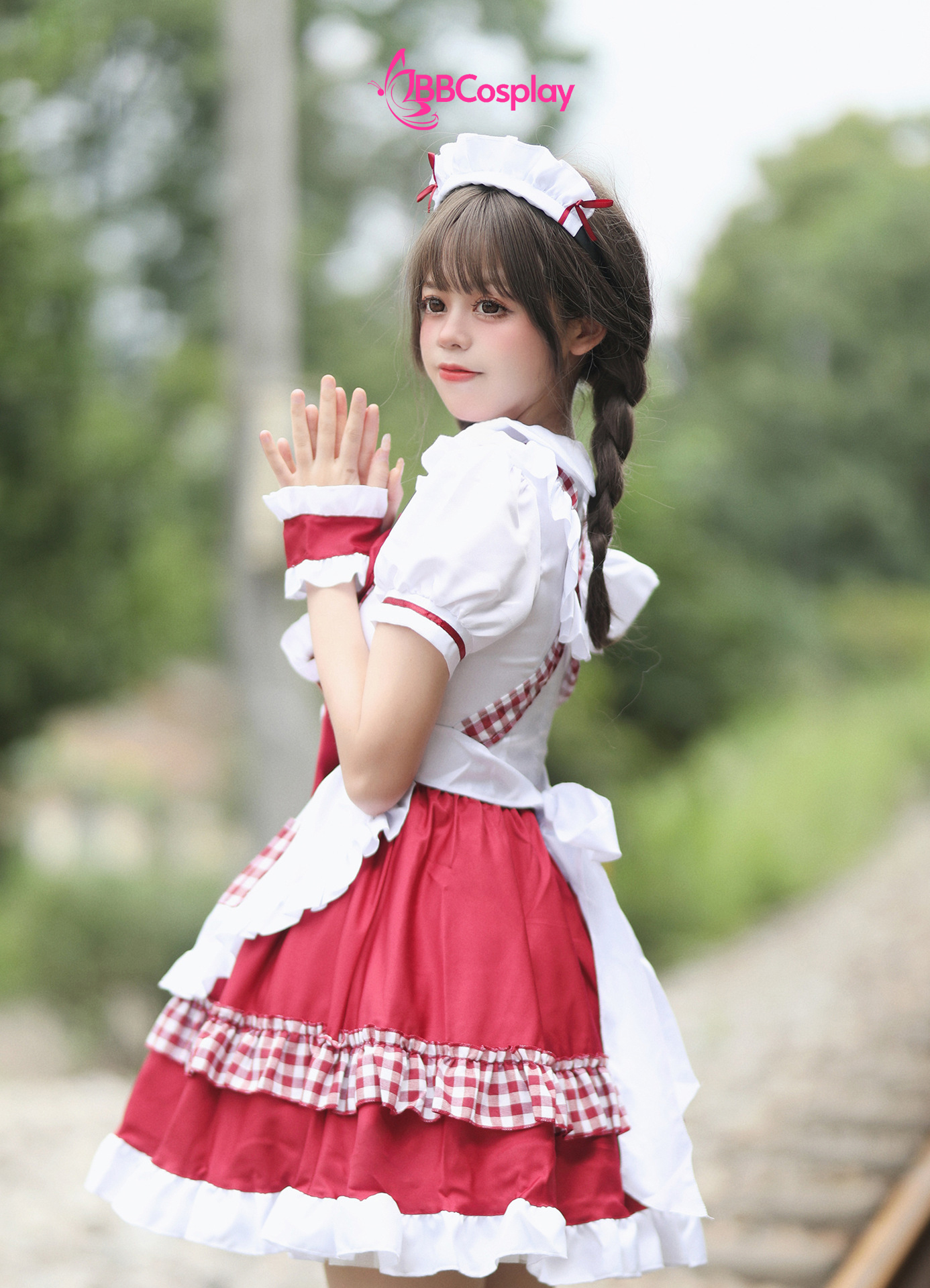 Trang Phục Nàng Hầu Cổ Lá Sen Kèm Tạp Dề Caro - Màu Đỏ