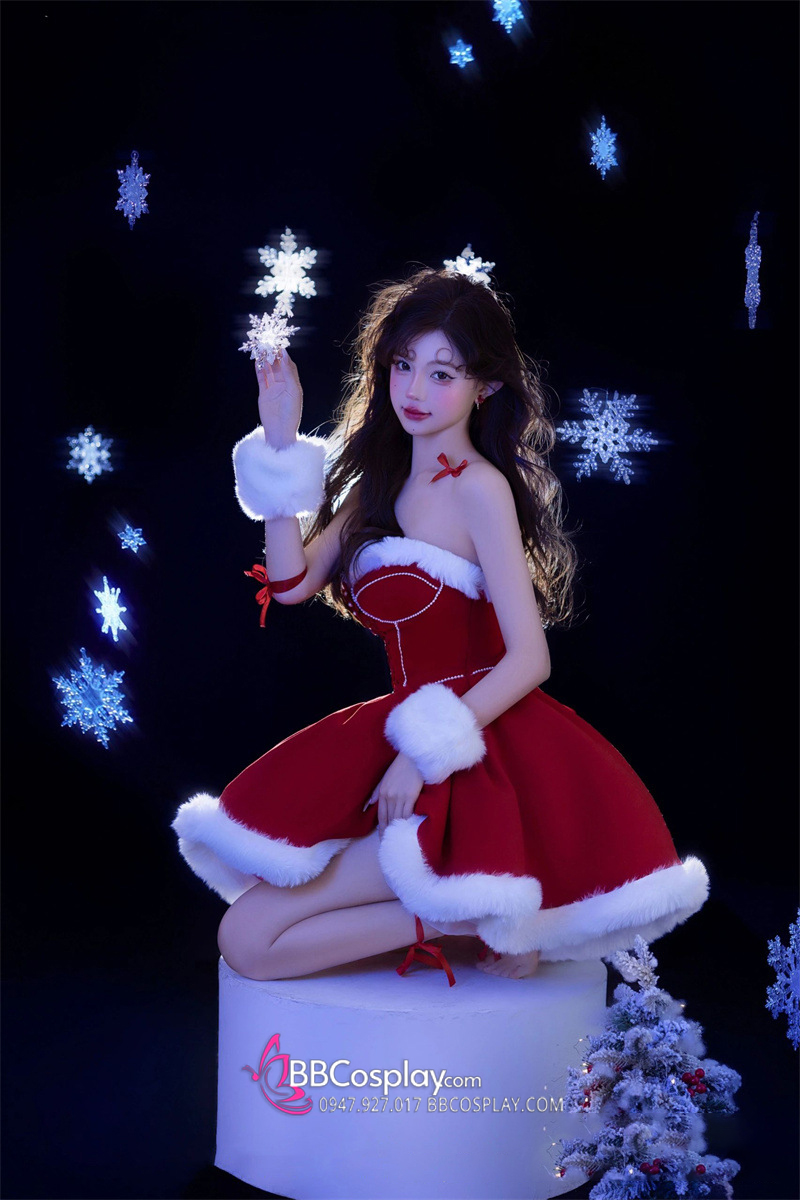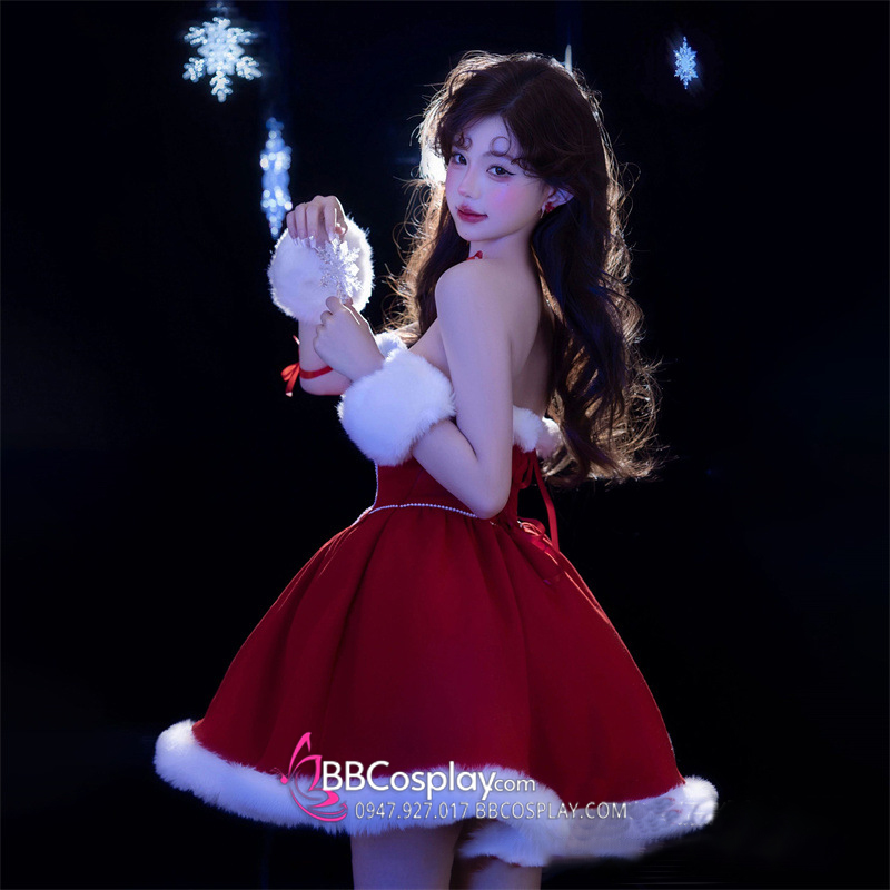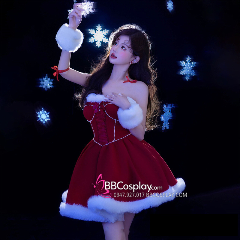 Trang Phục Noel Dáng Cúp Ngực Viền Lông