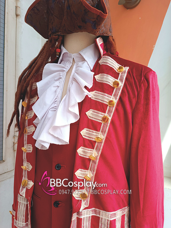 Trang phục thuyền trưởng Hook được lấy cảm hứng từ bộ phim Peter Pan, Trang phục đi kèm nhiều phụ kiện như nón, bịt mắt, giày,... giúp bạn hóa trang vào nhân vật mình yêu thích một cách hoàn hảo. Chất liệu của trang phục bao gồm kate, nhung, vải ren với đường may chắc chắn, dáng đồ phù hợp với nhiều dáng người, giúp bạn thoải mái vận động.
