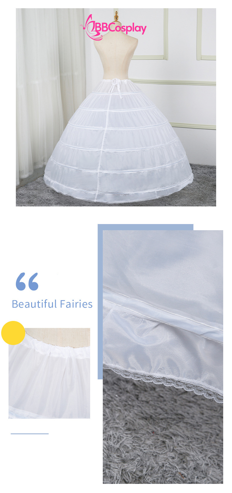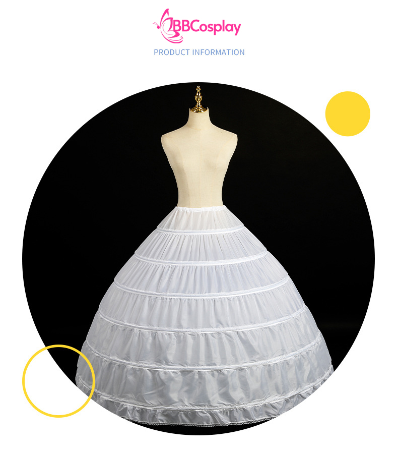 Với 6 tầng gọng cứng cáp cùng kích thước "khủng" lên đến chu vi 250cm, sản phẩm sẽ biến bất kỳ chiếc váy nào trở nên đồ sộ, xoè tròn hoàn hảo như trong những bộ phim cổ tích Châu Âu.