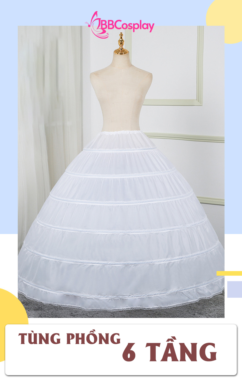 Không phải 2 hay 4 tầng, sản phẩm sở hữu 6 tầng gọng chắc chắn, được bố trí khoa học từ eo xuống chân váy. Mỗi tầng đều có độ cứng vừa đủ để tạo form dáng hình chuông (bell shape) hoàn hảo mà vẫn đảm bảo sự thoải mái khi di chuyển.