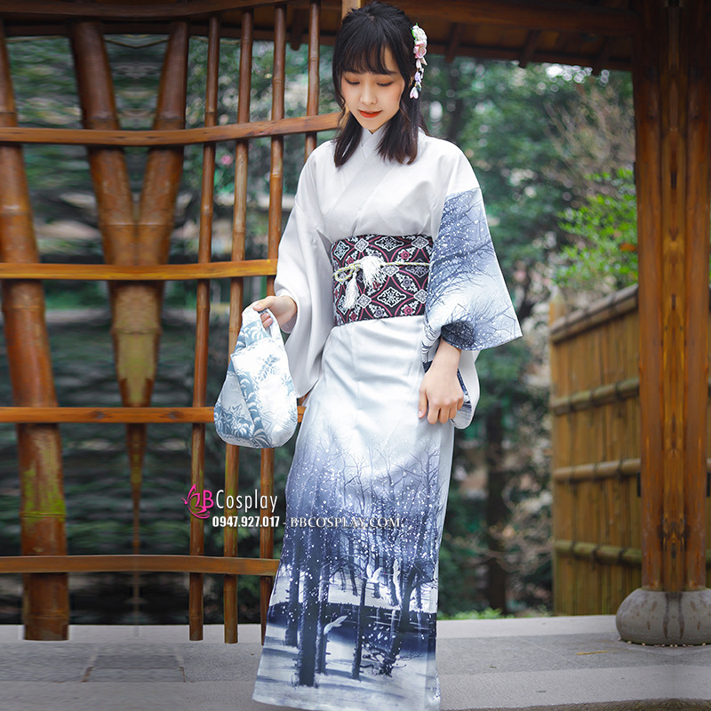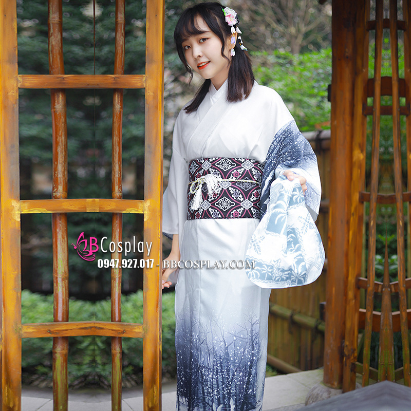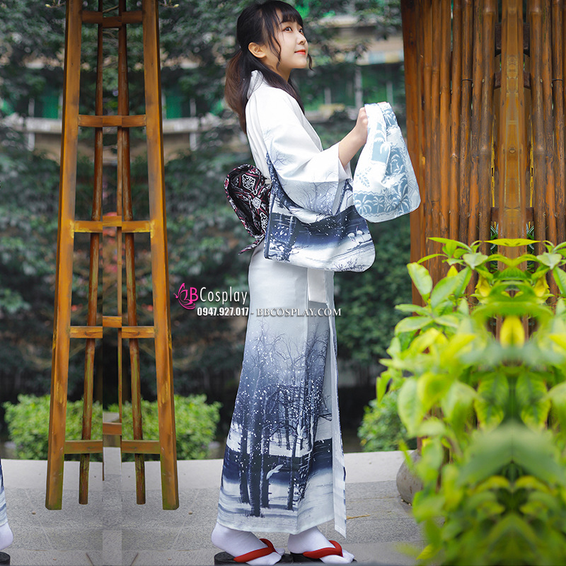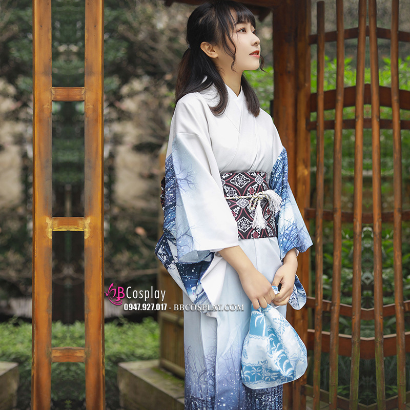 Yukata Yukiona Nền Áo Xanh Trắng